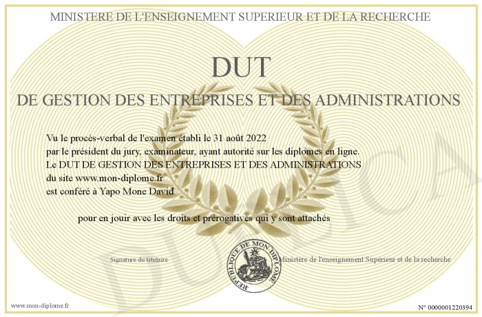 Envoyez par email votre DUT DE GESTION DES ENTREPRISES ET DES ADMINISTRATIONS personalisé