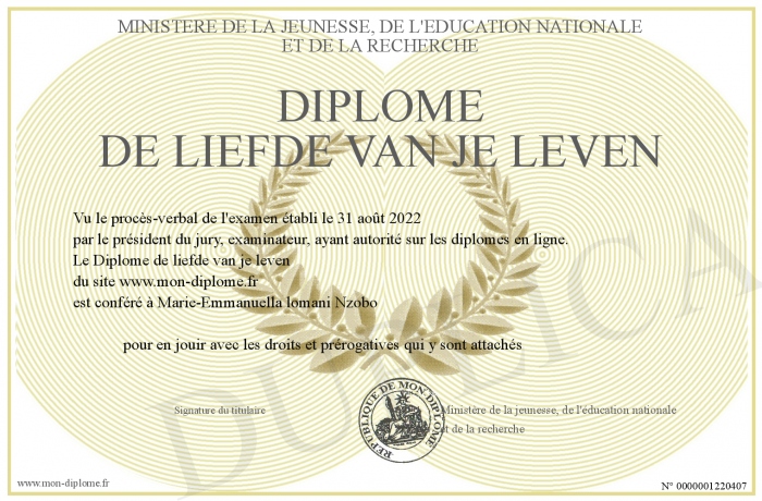 Envoyez par email votre Diplôme de liefde van je leven personalisé