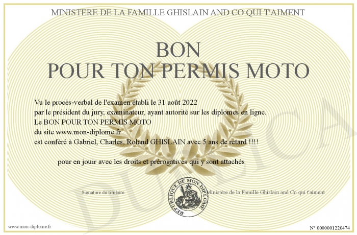 Envoyez par email votre BON POUR TON PERMIS MOTO personalisé