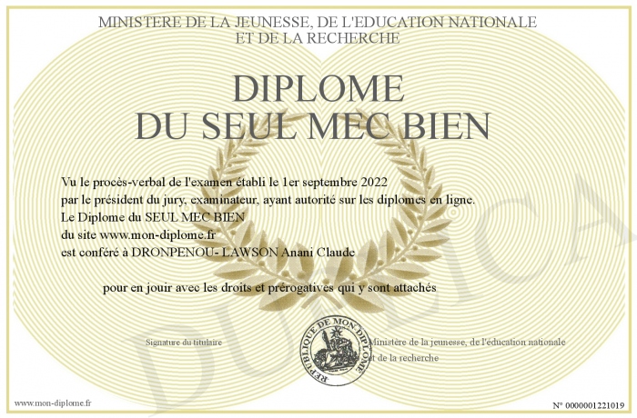 Envoyez par email votre Diplôme du SEUL MEC BIEN personalisé