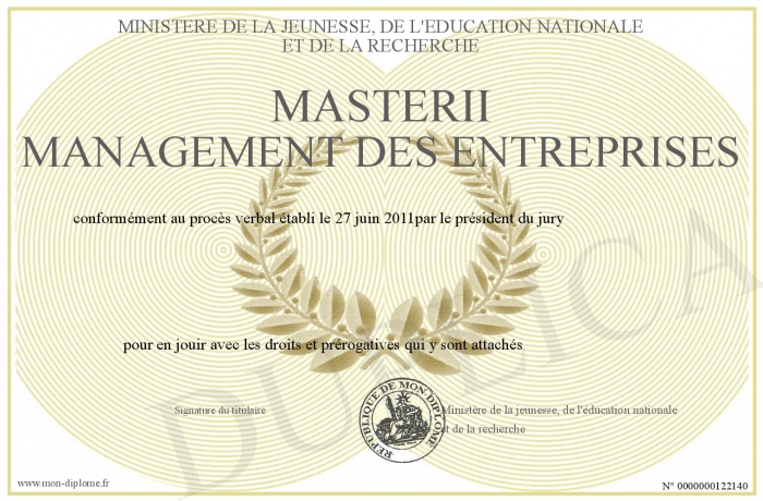 Envoyez par email votre masterII MANAGEMENT DES ENTREPRISES personalisé