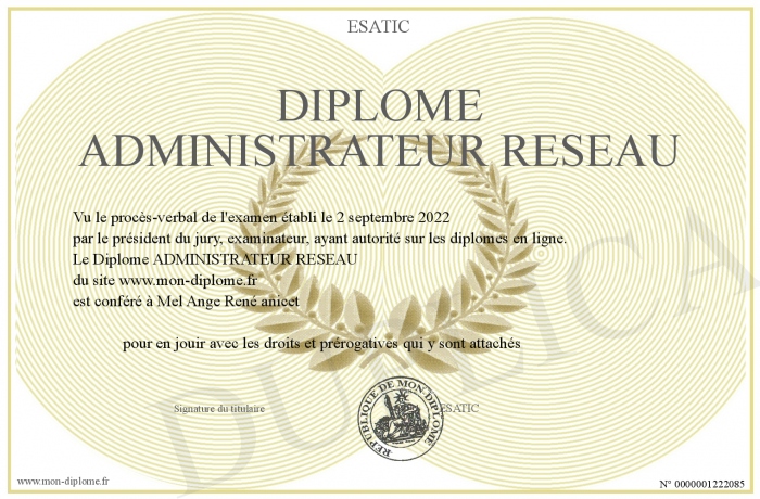 Envoyez par email votre Diplôme ADMINISTRATEUR RESEAU personalisé