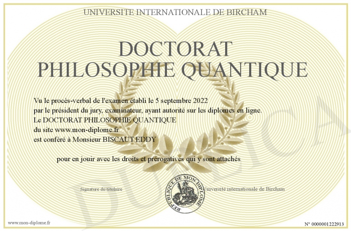 Envoyez par email votre DOCTORAT PHILOSOPHIE QUANTIQUE personalisé