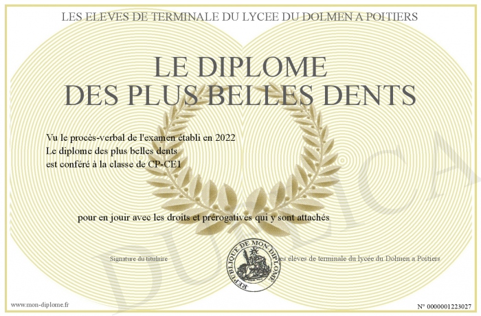 Envoyez par email votre Le Diplôme des plus belles dents personalisé