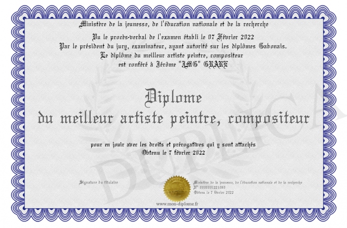 Envoyez par email votre Diplôme du meilleur artiste peintre, compositeur personalisé