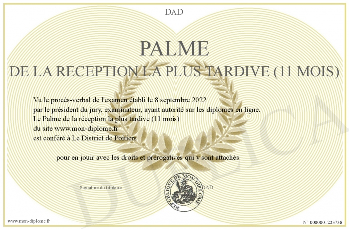 Envoyez par email votre Palme de la réception la plus tardive (11 mois) personalisé