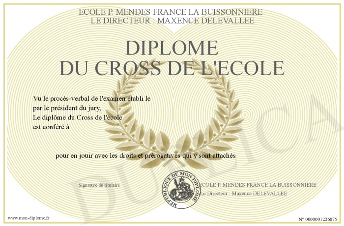 Envoyez par email votre Diplôme du Cross de l'école personalisé