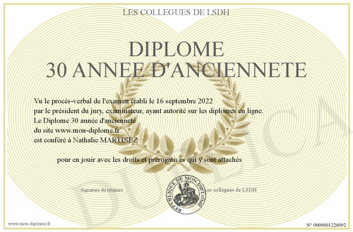 Envoyez par email votre Diplôme 30 année d'ancienneté personalisé