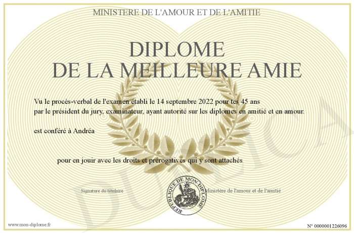 Envoyez par email votre Diplôme de la meilleure amie personalisé
