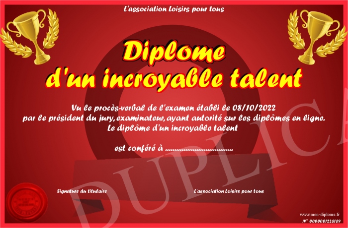 Envoyez par email votre Diplôme d'un incroyable talent personalisé