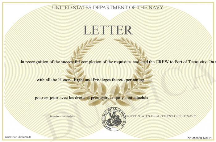 envoyé par le UNITED STATES DEPARTMENT OF THE NAVY !