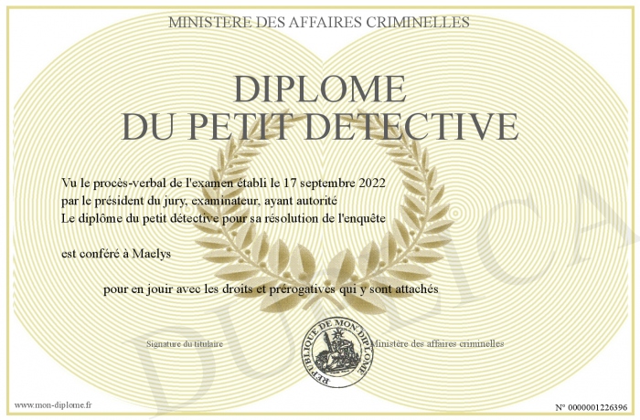 Envoyez par email votre Diplôme du Petit détective personalisé