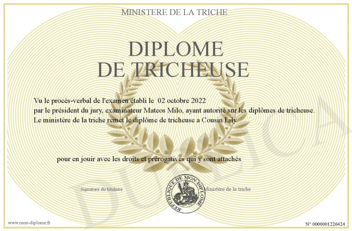 Envoyez par email votre Diplôme de tricheuse personalisé