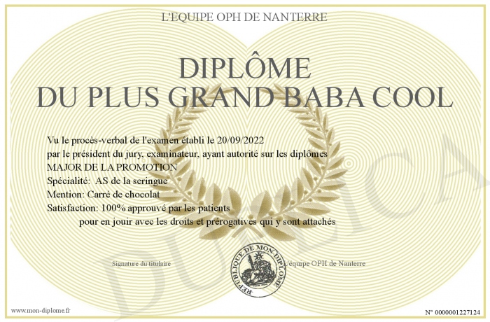 Envoyez par email votre DIPLÔME DU PLUS GRAND BABA COOL personalisé