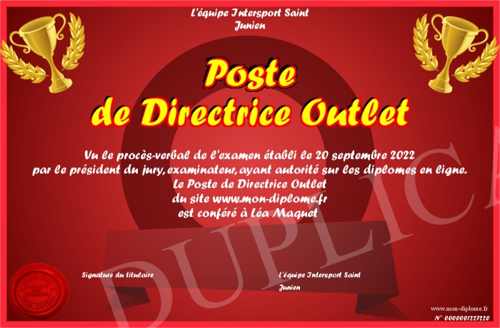 Envoyez par email votre Poste de Directrice Outlet personalisé