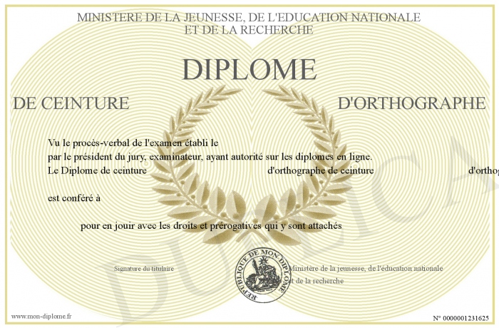 Envoyez par email votre Diplôme de ceinture d'orthographe personalisé