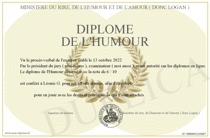 envoyé par le Ministère du rire, de l'humour et de l'amour ( donc Logan ) !