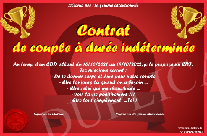 Envoyez par email votre Contrat de couple à durée indéterminée personalisé