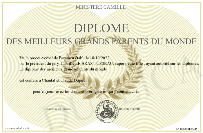 Envoyez par email votre Diplôme des meilleurs grands parents du monde personalisé