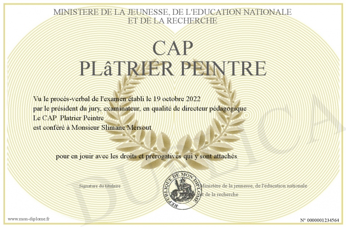 Envoyez par email votre CAP Plâtrier Peintre personalisé