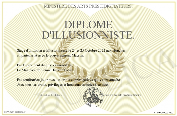 Envoyez par email votre Diplôme d'Illusionniste. personalisé