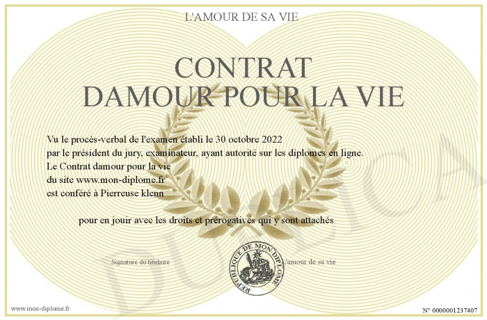 Envoyez par email votre Contrat damour pour la vie personalisé