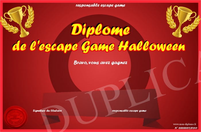 Envoyez par email votre Diplôme de l'escape Game Halloween personalisé