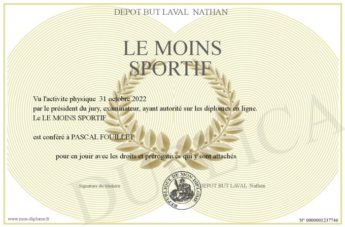 Envoyez par email votre LE MOINS SPORTIF personalisé