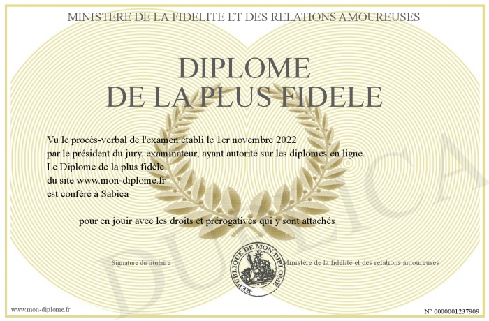 Envoyez par email votre Diplôme de la plus fidèle personalisé