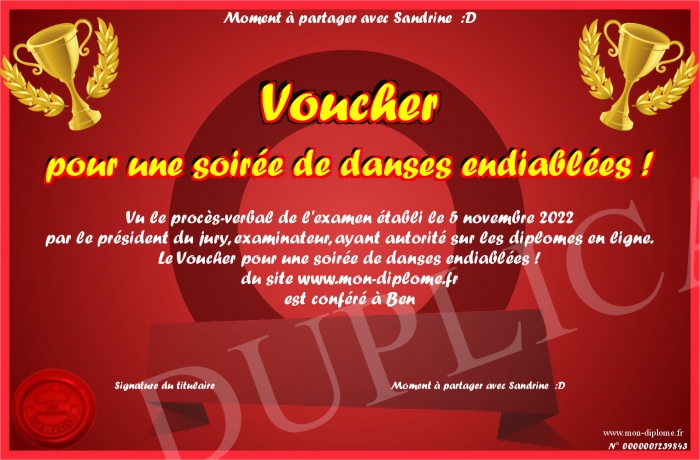Envoyez par email votre Voucher pour une soirée de danses endiablées ! personalisé
