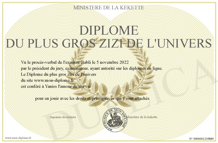Envoyez par email votre Diplôme du plus gros zizi de l'univers personalisé