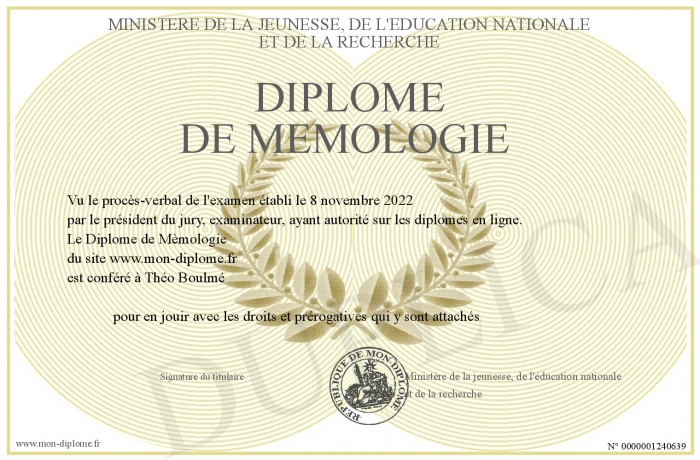 Envoyez par email votre Diplôme de Mèmologie personalisé
