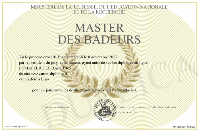 Envoyez par email votre MASTER DES BADEURS personalisé