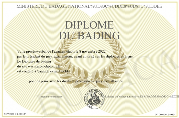 Envoyez par email votre Diplôme du bading personalisé