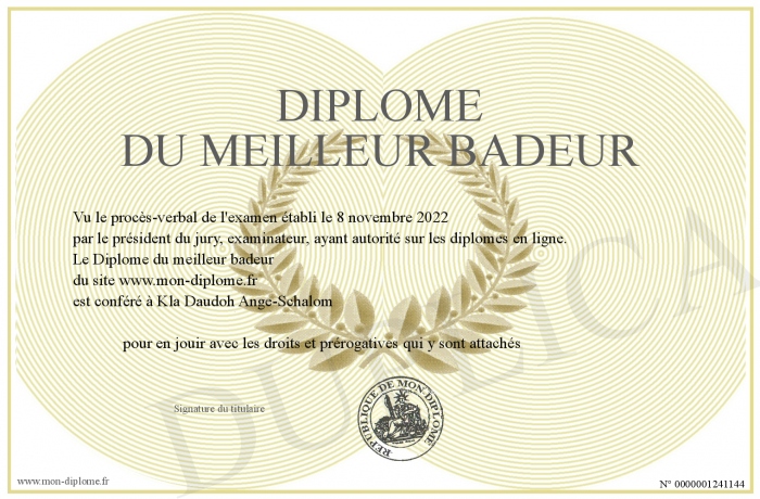 Envoyez par email votre Diplôme du meilleur badeur personalisé
