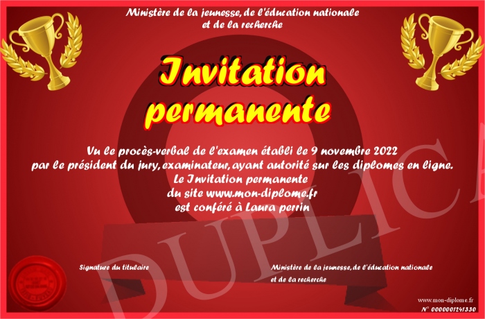 Envoyez par email votre Invitation permanente personalisé