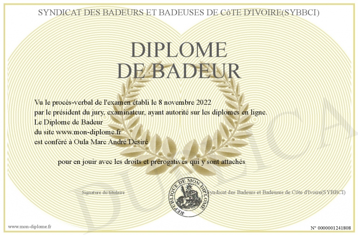 Envoyez par email votre Diplôme de Badeur personalisé