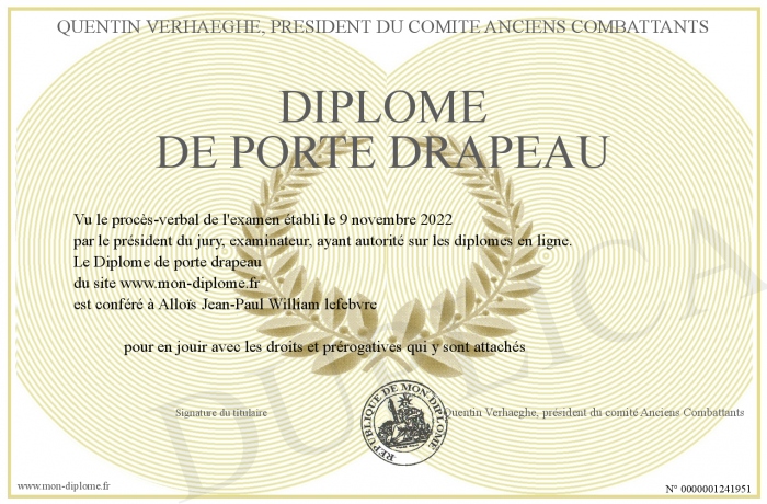 Envoyez par email votre Diplôme de porte drapeau personalisé