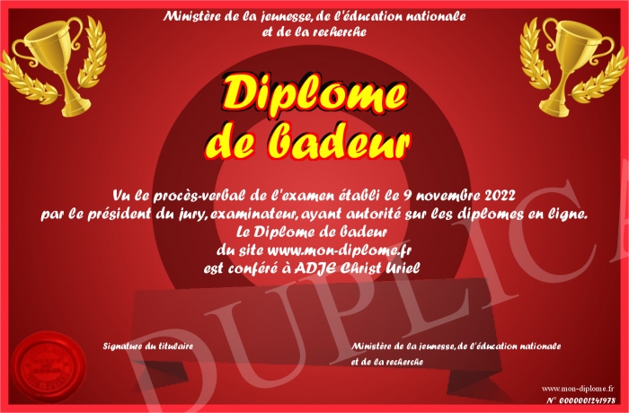 Pour demander la suppression du diplome affiché ci-haut, cliquez ici.