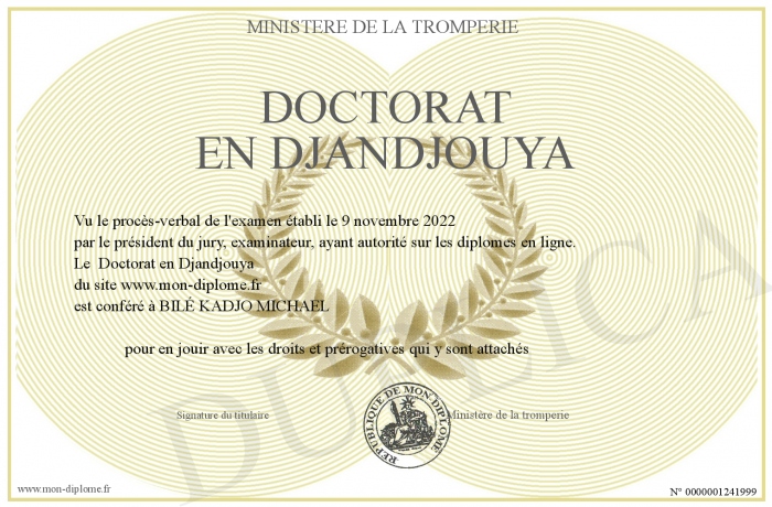 Envoyez par email votre Doctorat en Djandjouya personalisé