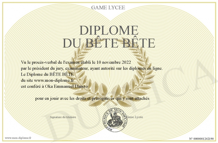 Envoyez par email votre Diplôme du BÊTE BÊTE personalisé