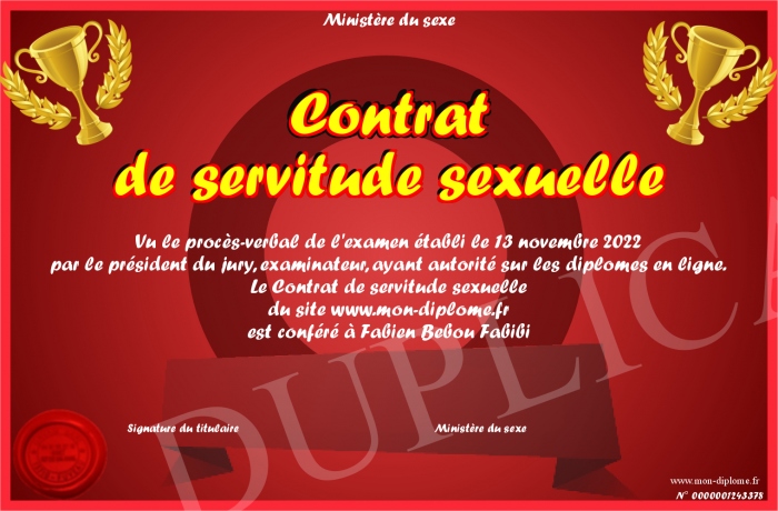 Envoyez par email votre Contrat de servitude sexuelle personalisé