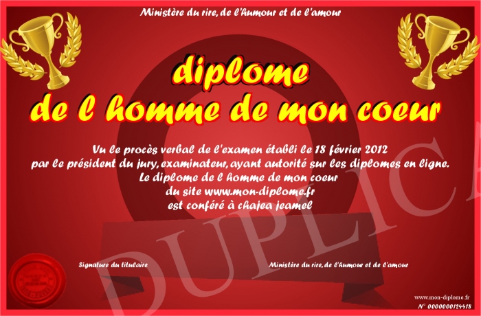Envoyez par email votre diplome de l homme de mon coeur personalisé