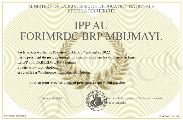 Envoyez par email votre IPP au FORIMRDC BRP Mbijmayi. personalisé