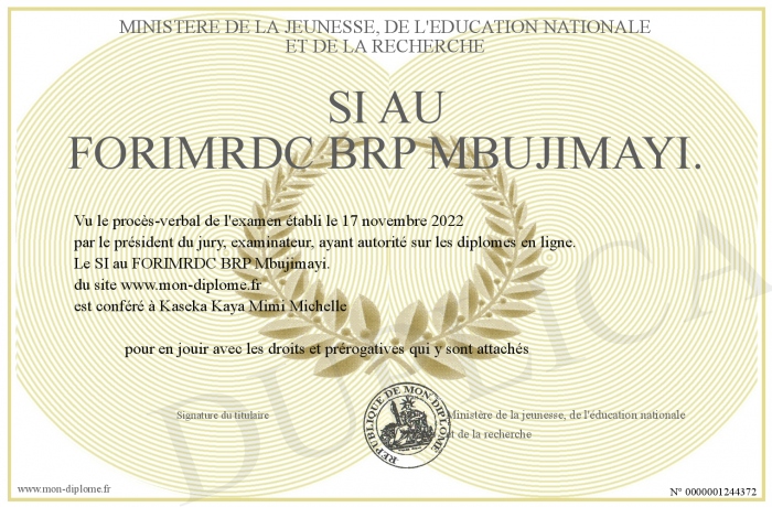 Envoyez par email votre SI au FORIMRDC BRP Mbujimayi. personalisé