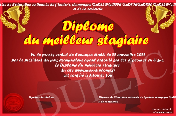Envoyez par email votre Diplôme du meilleur stagiaire personalisé