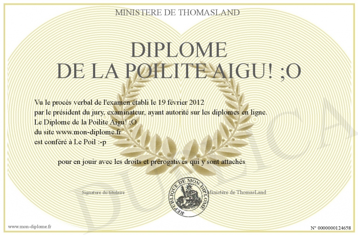 Envoyez par email votre Diplôme de la Poilite Aigu! ;O personalisé
