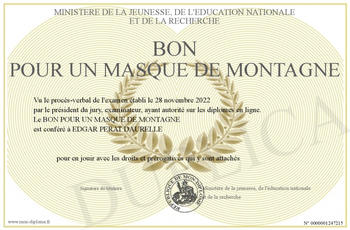 Envoyez par email votre BON POUR UN MASQUE DE MONTAGNE personalisé