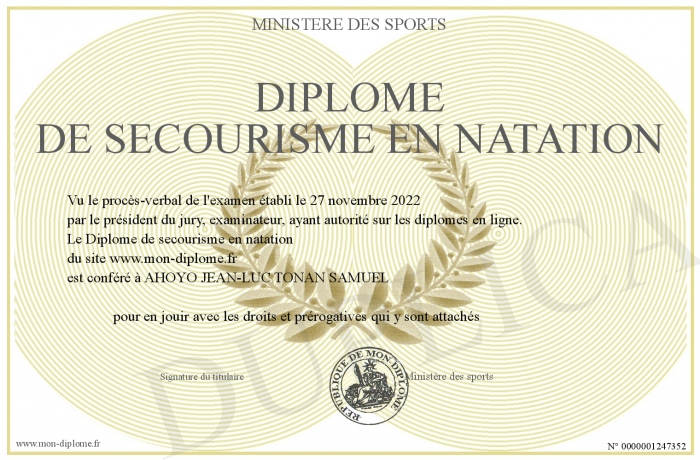 Envoyez par email votre Diplôme de secourisme en natation personalisé