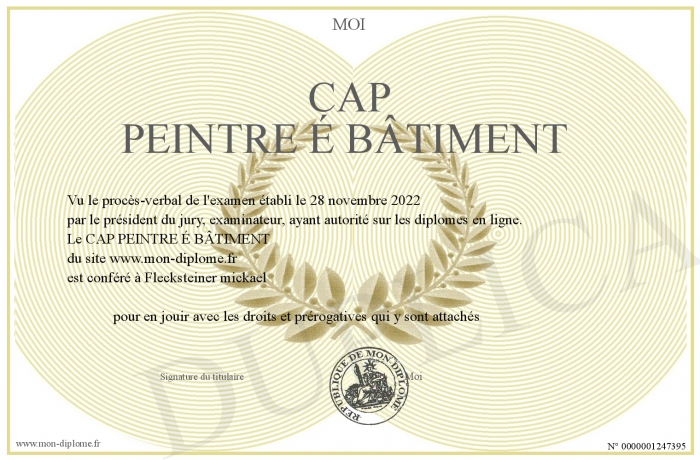 Envoyez par email votre CAP PEINTRE É BÂTIMENT personalisé